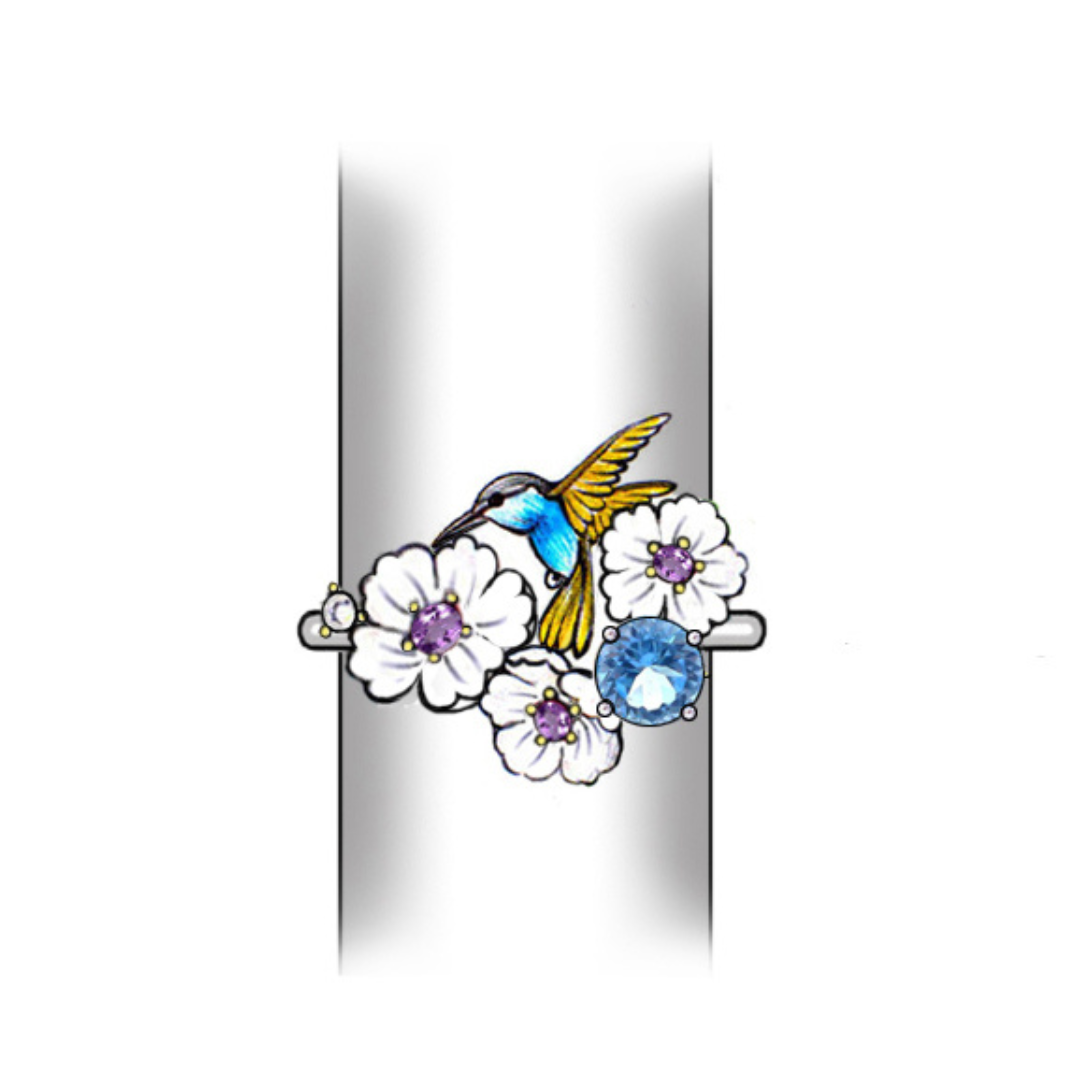 Nje unaze me lule te bardha , nje zog blu flori dhe gure zirkoni