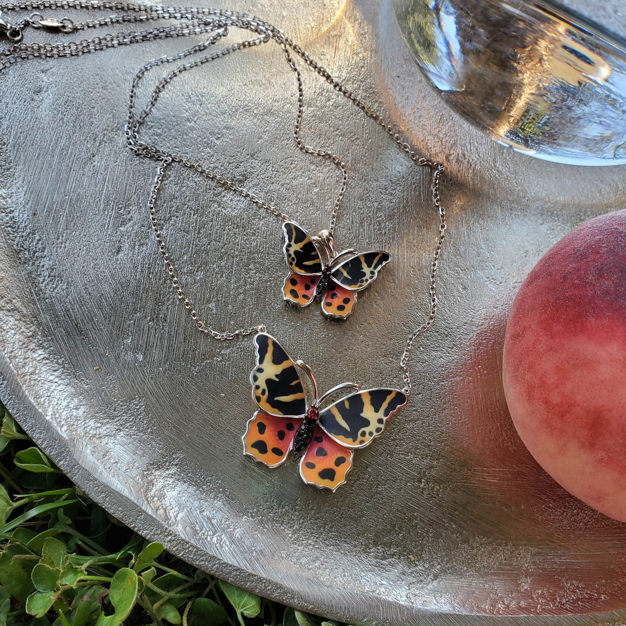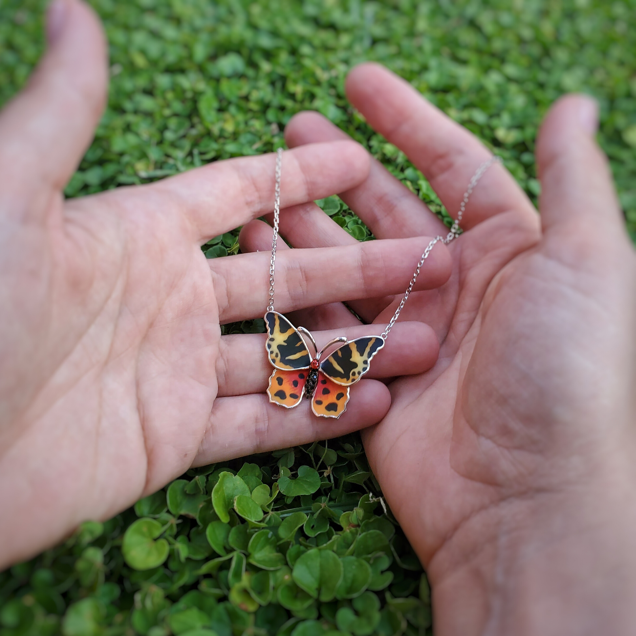 Një vend i ëndërruar plot flutura! Një rezervat unik natyror mund të gjendet në Ishullin Rhodes, "Butterfly Valley" ose në Greqisht "Petaloudes Koilada". Tingëllon si një vend i ëndërruar dhe vërtet është! Një habitat me florë të dendur, bukuri natyrore që të lë pa frymë, struktura urash në mënyrë perfekte harmonike me natyrën, shtigjet e shtruara, pellgjet, ujëvarat e vogla të pashtershme dhe një atmosferë të qetë rreth e përqark. Vendi perfekt për të adhuruar Flutura të bukura dhe të rralla Jersey Tiger. Bëni tuajin këtë xhevahir unik të pikturuar me dorë si një simbol të lirisë dhe bukurisë!
